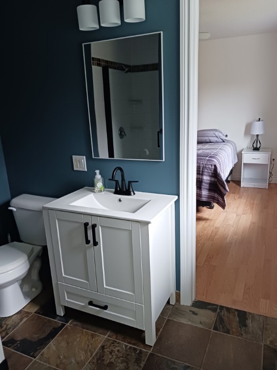 Principal queen bedroom with a poor man’s ensuite, second queen bedroom and a third bedroom with two single beds. Sleeps 6. Second and third bedroom share the second 3 piece bathroom with shower.