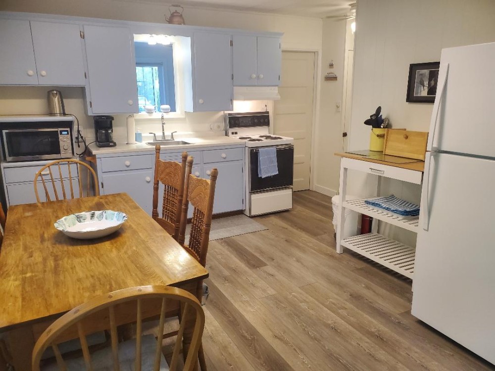 Check out this traditional three-bedroom bungalow cottage sitting on quiet street on a large lot with a covered front deck. Front and back yards have seating areas for your enjoyment. A short three-minute walk takes you to the beautiful, sandy South Street Beach. This cozy cottage has two bedrooms and a double sofa bed to sleep up to 6. Kitchen is equipped with everything you need and including a nice sized table for family meals. Enjoy a book or your favourite show on the flat screen smart tv in the living room.