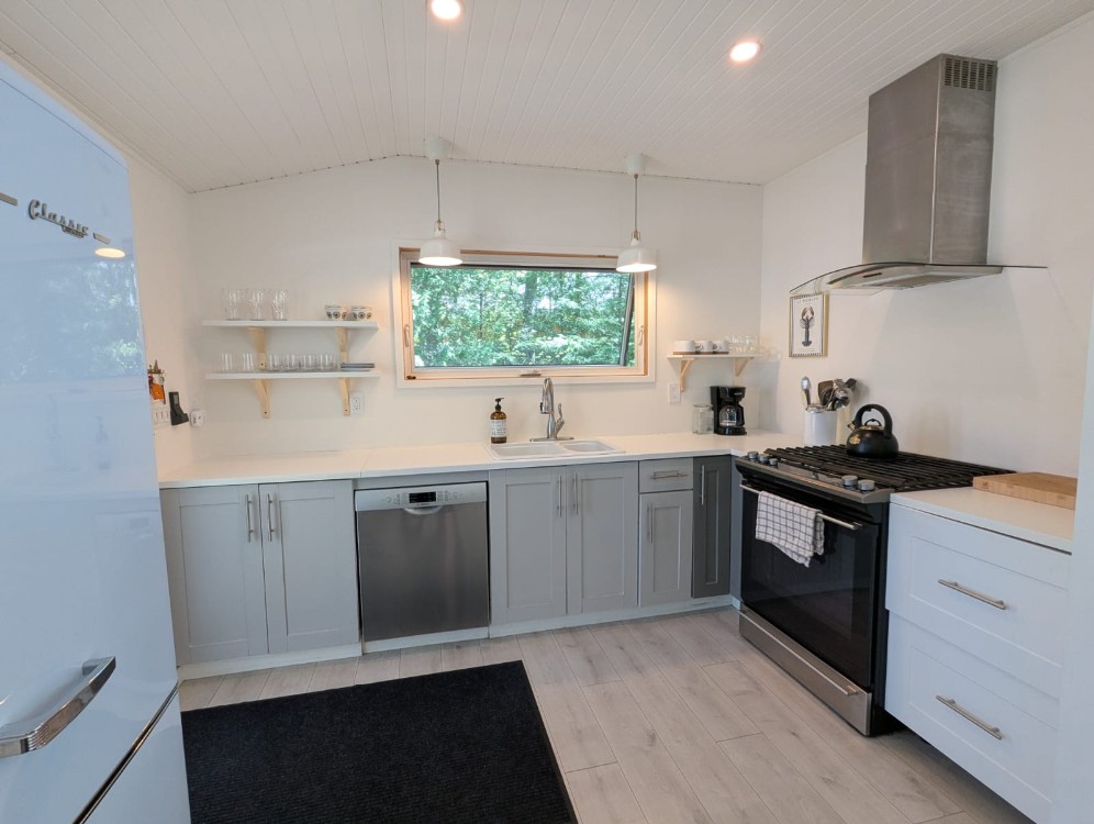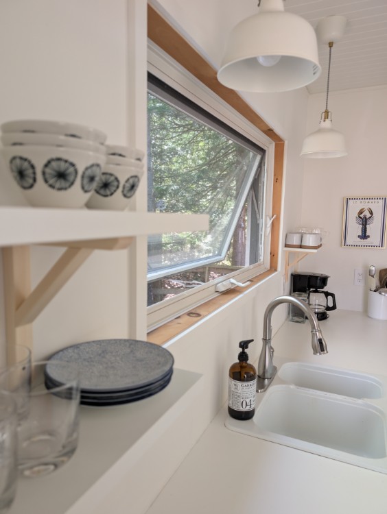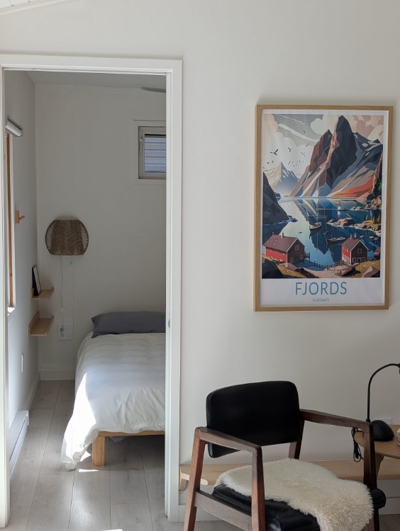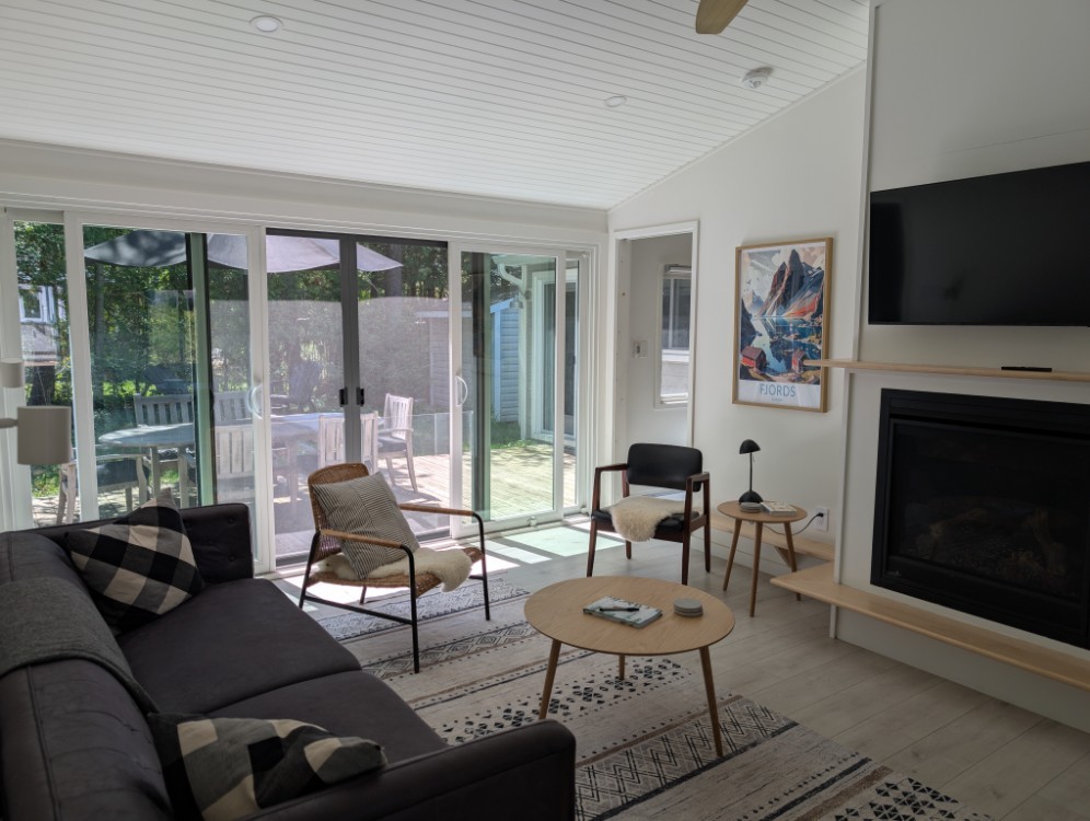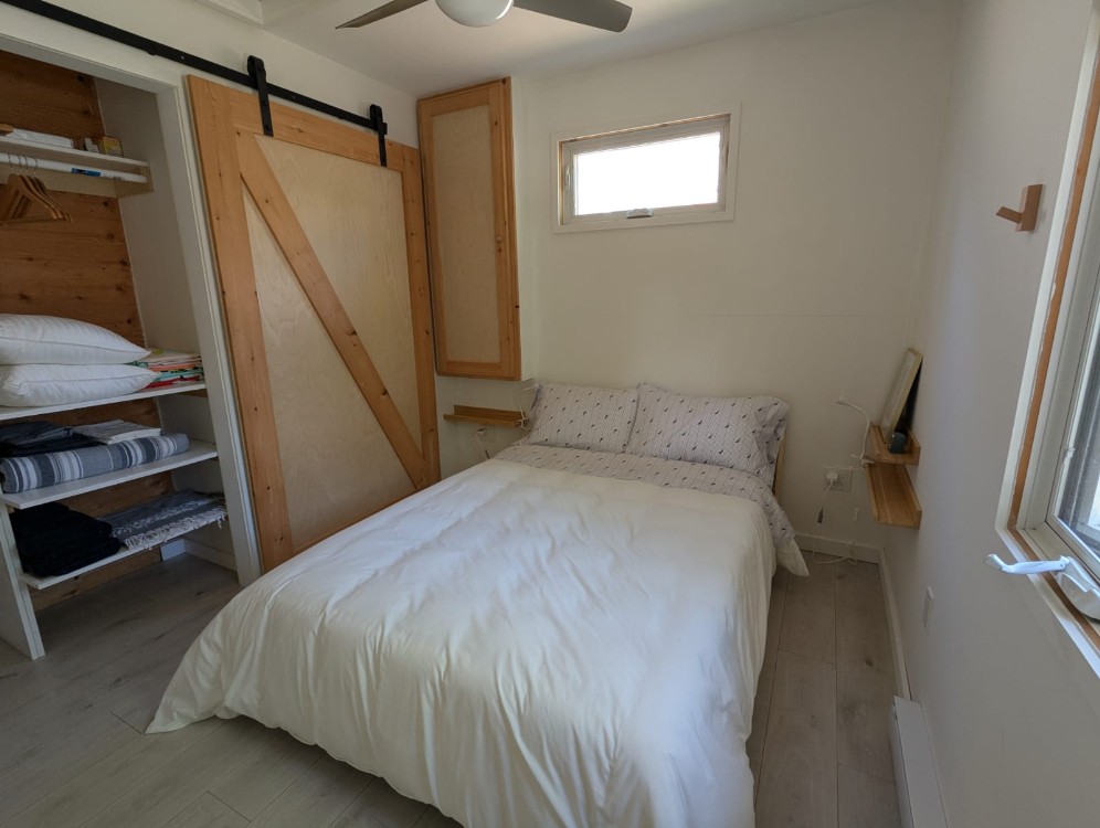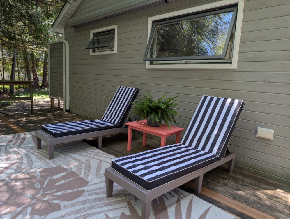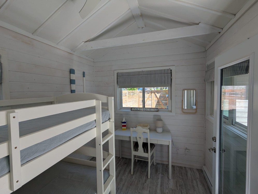 The main house features two bedrooms (queen & double), a well-equipped kitchen, and a spacious living area that flows seamlessly to the outdoor spaces. Steps from the main living area, you'll find our charming bunkie—an ideal retreat for a peaceful siesta or focused work session in its dedicated office space.