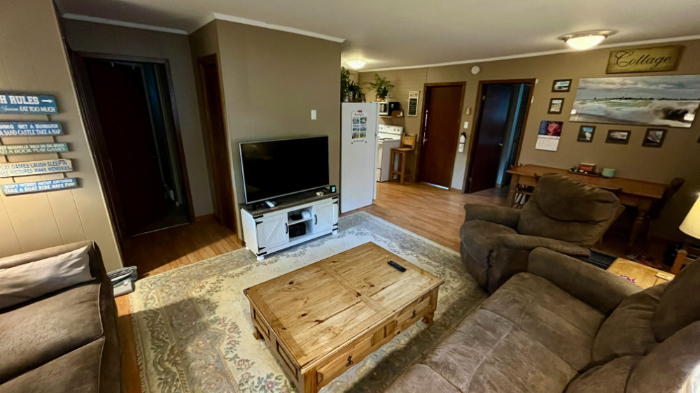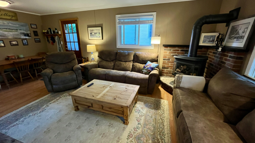 Inside, you'll find a fully furnished space with a spacious open-concept living room, a well-equipped kitchen, and a stackable washer and dryer. The large windows let in refreshing lake breezes, while ceiling fans in the bedrooms keep things comfortable. Situated on a peaceful dead-end road, Little Lane offers a tranquil retreat with a lovely mature cedar arbor for complete privacy, allowing you to unwind in total relaxation without the hustle and bustle of traffic.