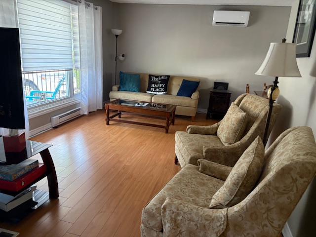 This vacation home is equipped with zonal AC units on main floor, one in bedroom and one at the other end in living room.
