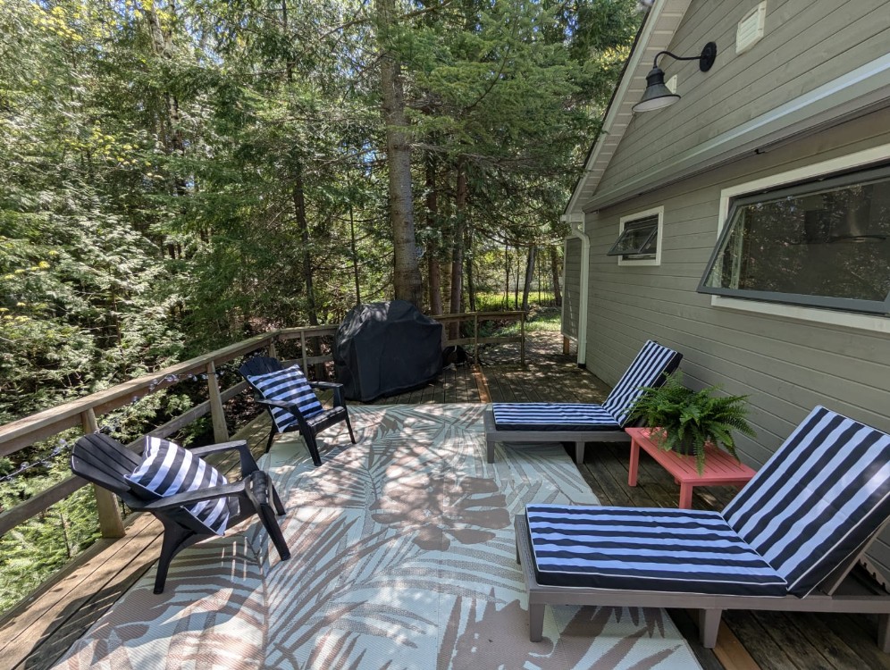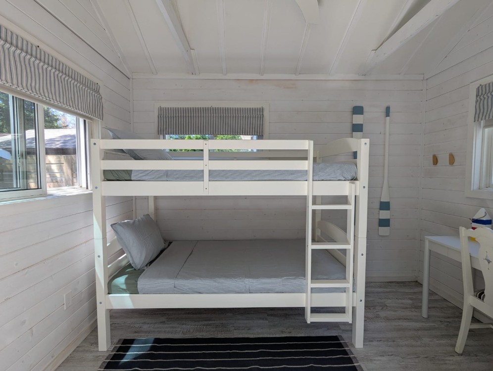 The main house features two bedrooms (queen & double), a well-equipped kitchen, and a spacious living area that flows seamlessly to the outdoor spaces. Steps from the main living area, you'll find our charming bunkie—an ideal retreat for a peaceful siesta or focused work session in its dedicated office space.