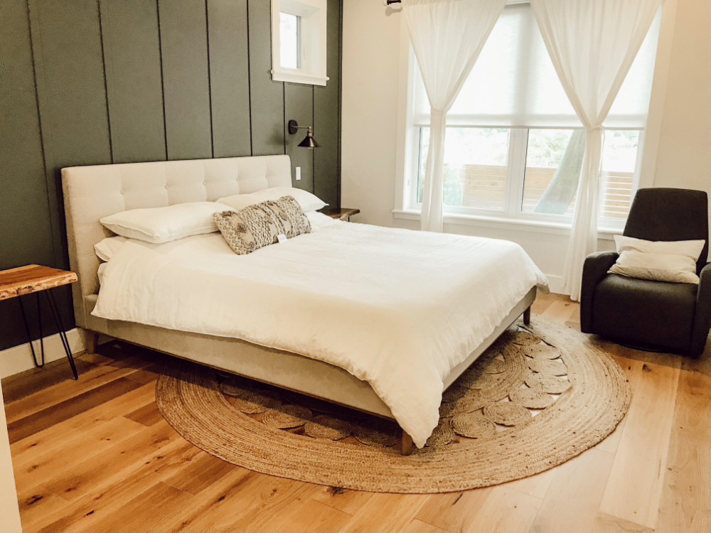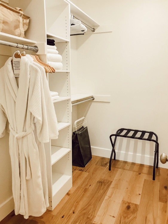 Our spacious guest room offers a comfortable queen sized bed and oversized closet with storage.